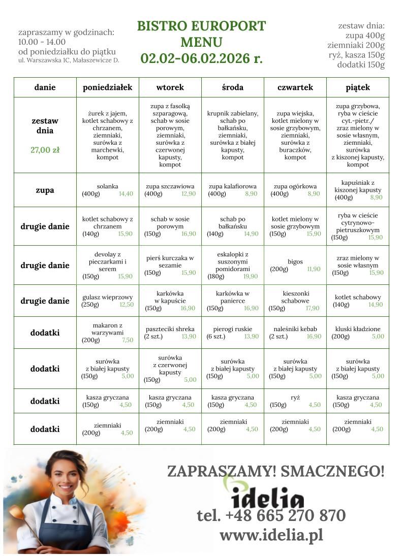Poniedziałek 02.02.2026 ZESTAW DNIA 27,00 ZŁ DOWÓZ